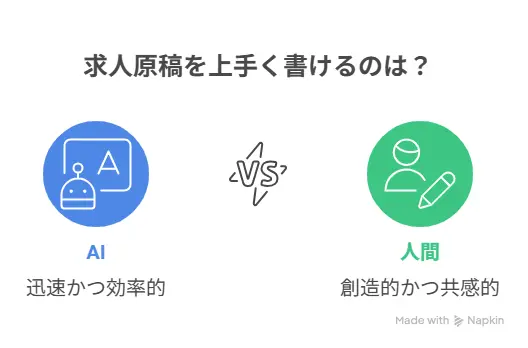 「AIに任せれば時間もコストも削減できる」「でも、人間の温かみや感性は必要なのでは?」——多くの採用担当者が抱くこうした疑問に答えるべく、本記事では実際に同一条件で求人原稿を作成し、AIと人間のライティングを徹底比較します。